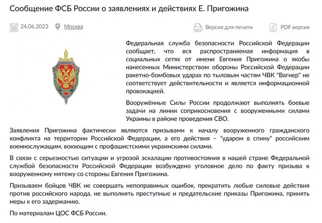 推 DARUGU : 俄:加入華格納視同烏克蘭同路人,普里格津:不加 06/24 22:06