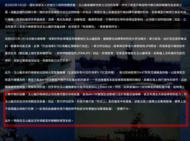 目前光是與直升機配合的起降固定等硬體就付之闕如,其餘必須的軟硬體與空間線路機台