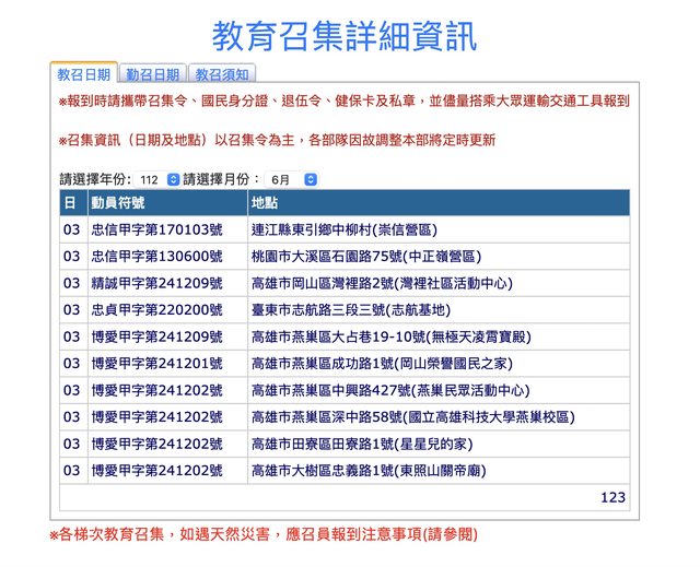 → Gdiaofuta : 用這些就能整理出每年教召的部隊組成了。 07/07 19:18