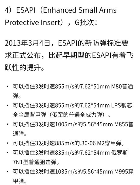 AI標準而言,NIJ 4級測試的彈藥類型僅有30-06(7.92x63)。但ESAPI測試彈種更多元,更