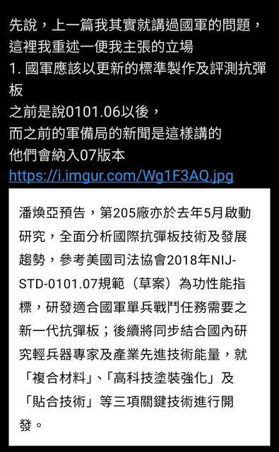 先講一個我以為表達的得很明顯,卻還是有人能拿來跳針作文章的個人看法:國軍防彈板