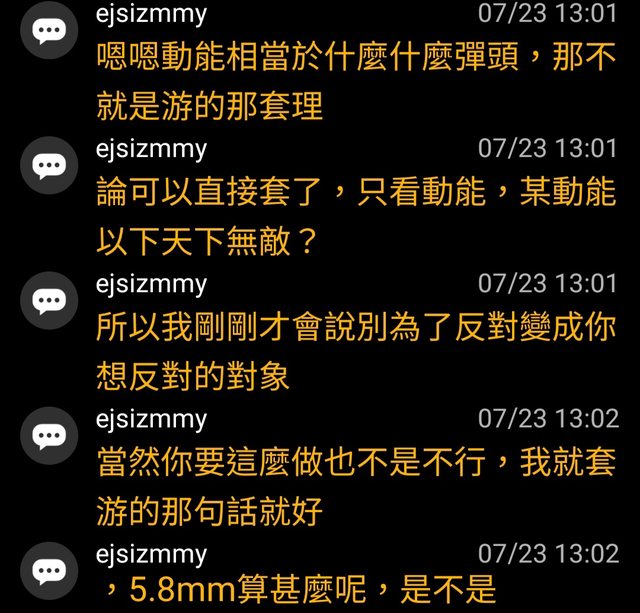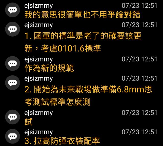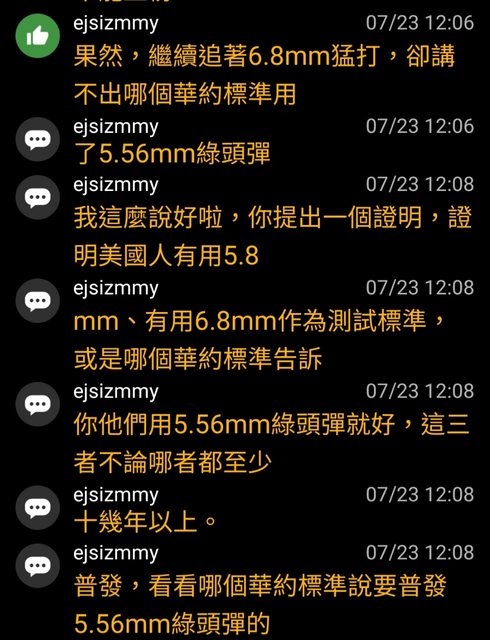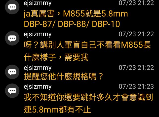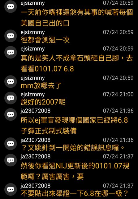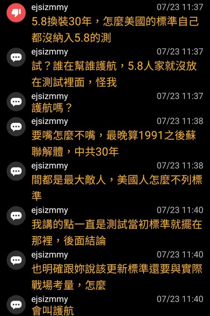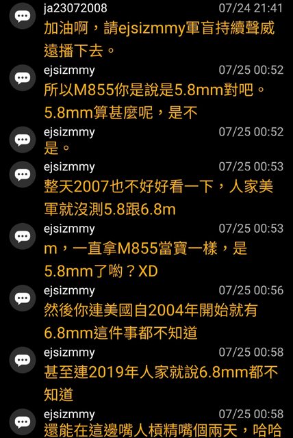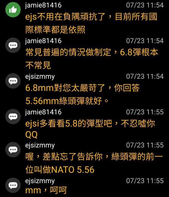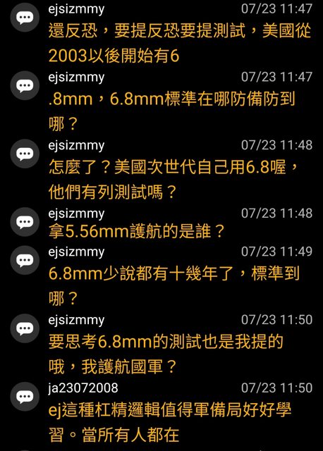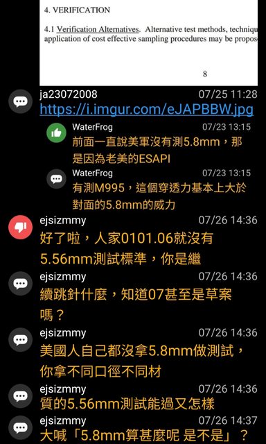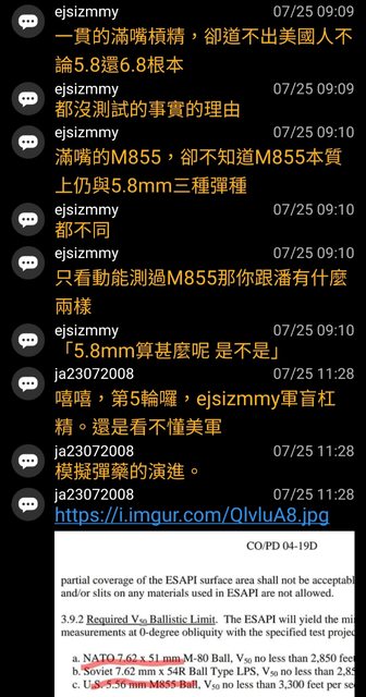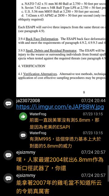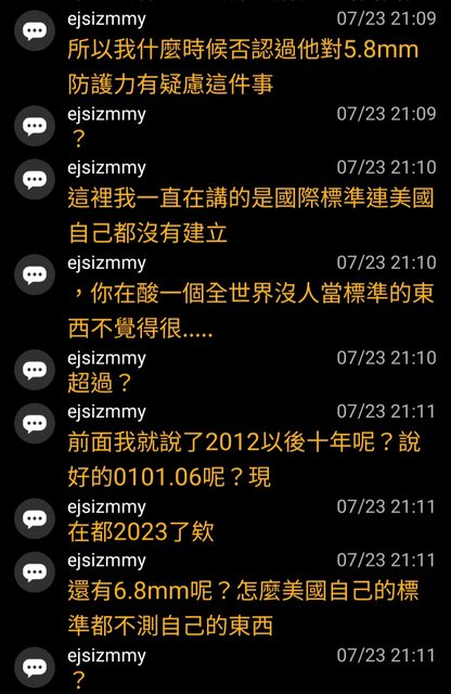 然後ejsizmmy再次宣揚美軍沒有測5.8彈藥,就是不合格標準的觀點。(x2)