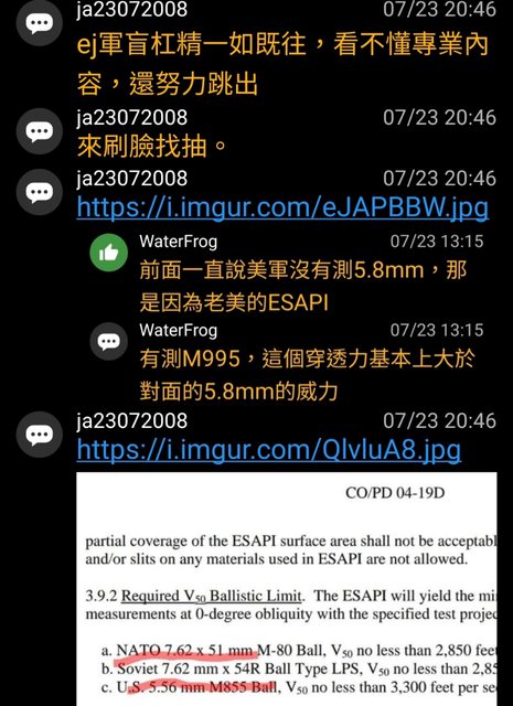 噓 ejsizmmy : 截圖誰都會,這位滿嘴別人軍盲的人,自己嘴中說的 07/27 23:57