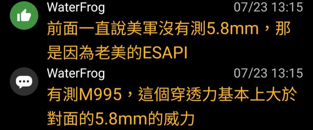 → ejsizmmy : 能過6.8mm不就是能過ESAPI標準嗎?一樣能過M855 07/27 23:42
