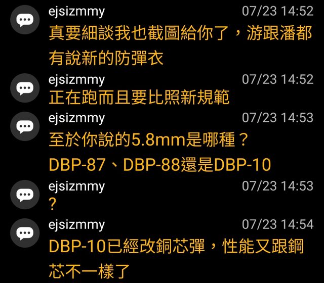 是啊,ejsizmmy認為拿M855要來模擬DBP-10,跟軍備局拿動能論魚目混珠的欺瞞手法類似