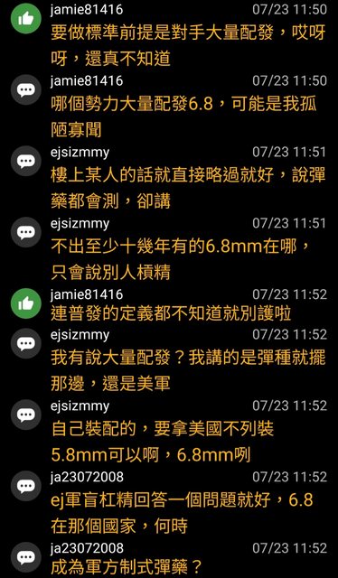 噓 ejsizmmy : 後面還在扯M995,搞清楚,我一開始就說直接用6.8mm07/27 23:38