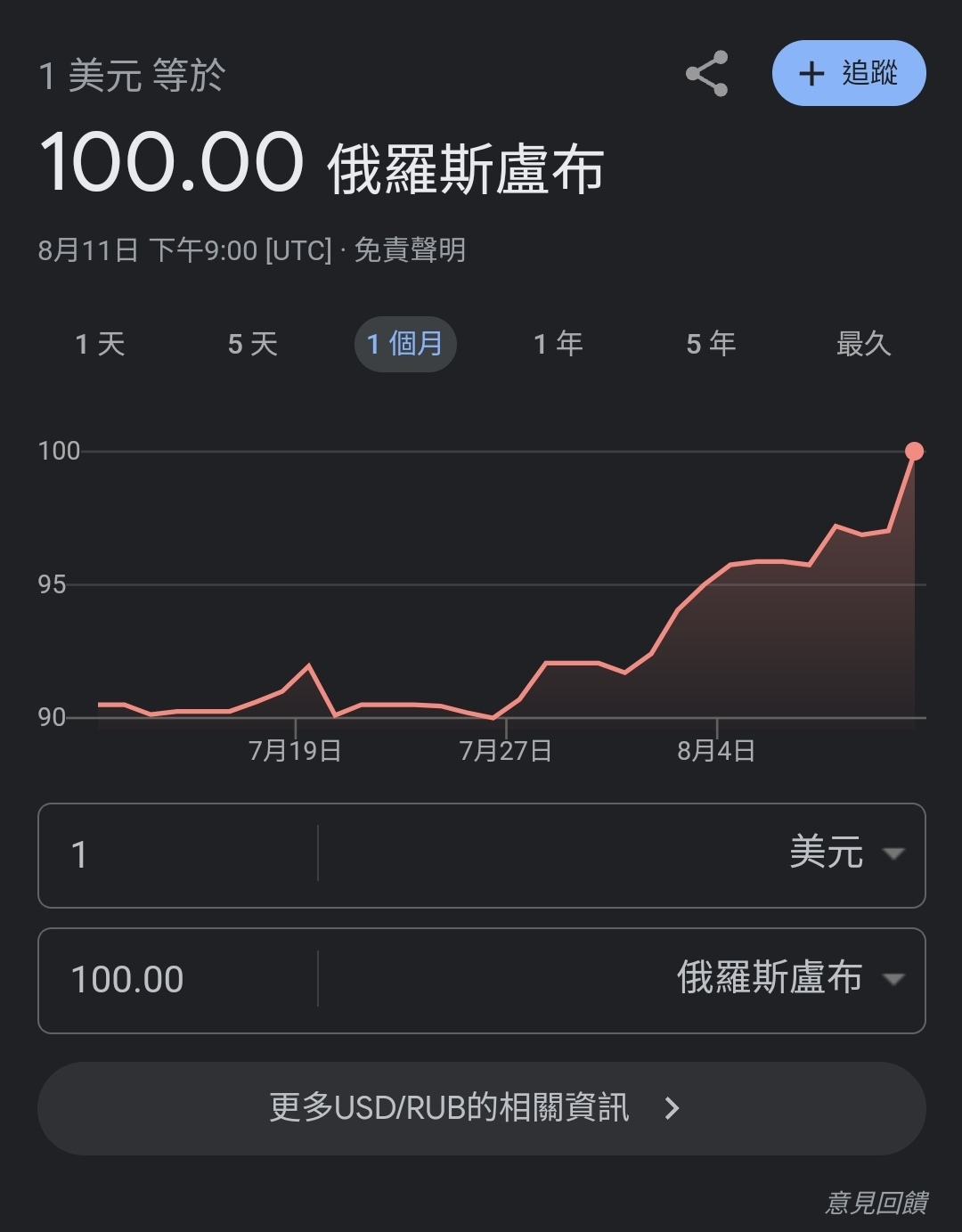 推 serenemind : 今天美元對盧布有機會破百元大關 08/11 22:03