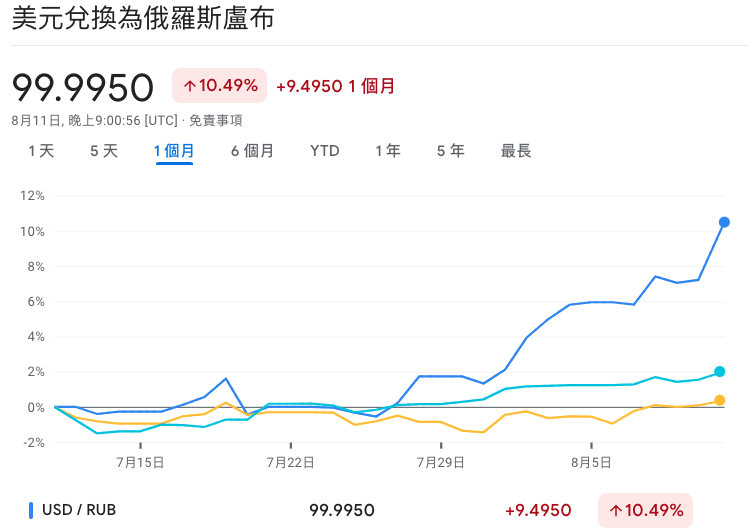 推 frozenmoon : The ruble has plunged to its lowest level 08/11 22:00