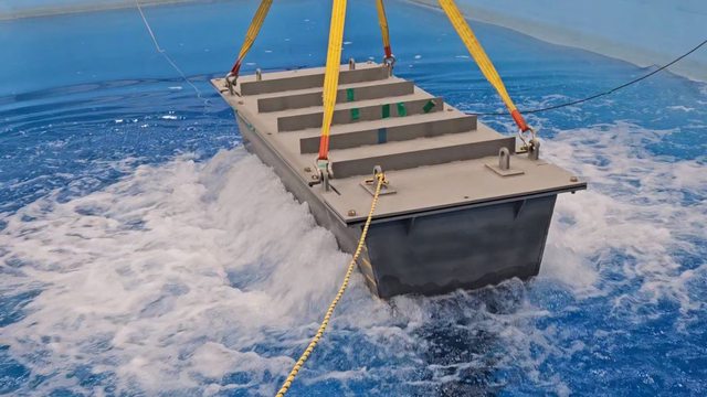 在共振水池中,他們通過模擬特定船隻在海底所能達到的最大速度來使螺旋槳旋轉,然後