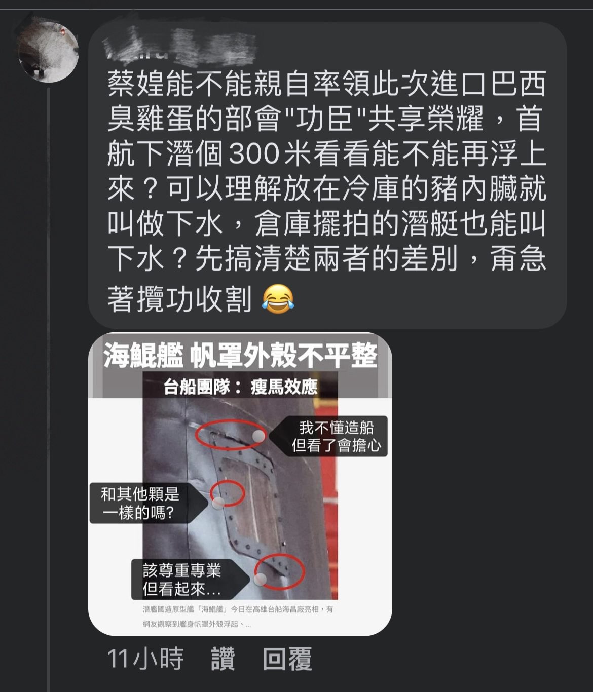 最近這兩天有新聞在吵台灣國造潛艦的皮不夠平整。 https://imgur.com/1ZNEmUx.jpg