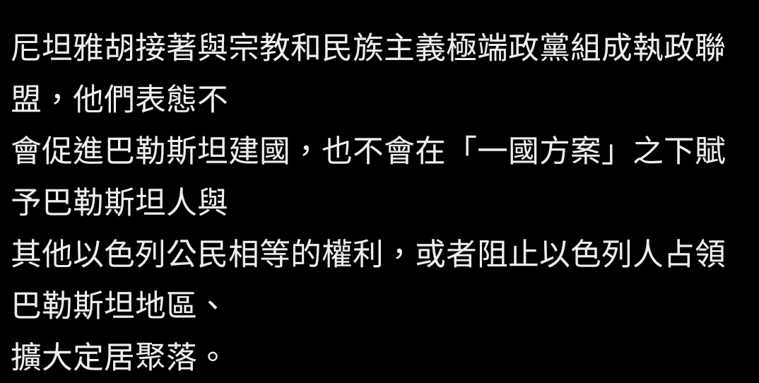 AdventurerCC: 同意,納坦的政策就是慢性滅絕巴勒斯坦,誰會乖乖 10/11 22:29