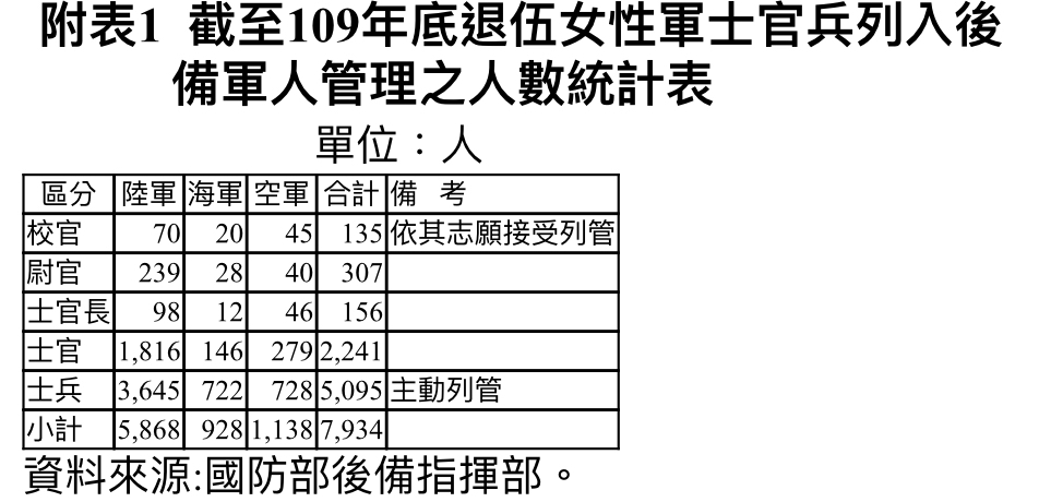jobli : 101年度至109年底退伍女性軍官及士官合計人數已達2, 10/23 16:32