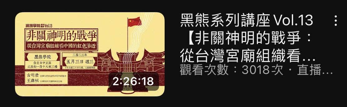 h80733 : 還有暗示中國滲透台灣宗教組織 11/20 22:36