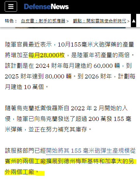 nanozako : 先賣155砲彈給美軍維持其戰略砲彈存量 12/11 22:19
