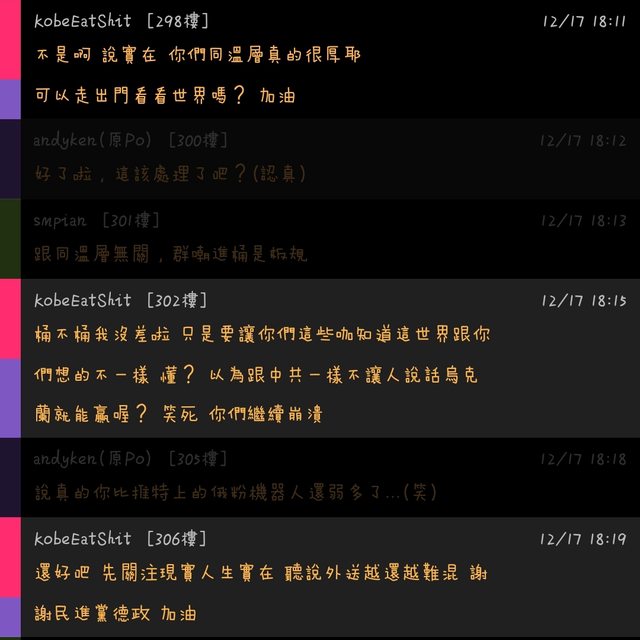 (如指稱板友為「藍白粉」、「蘇貞昌」、「某黨網軍」)