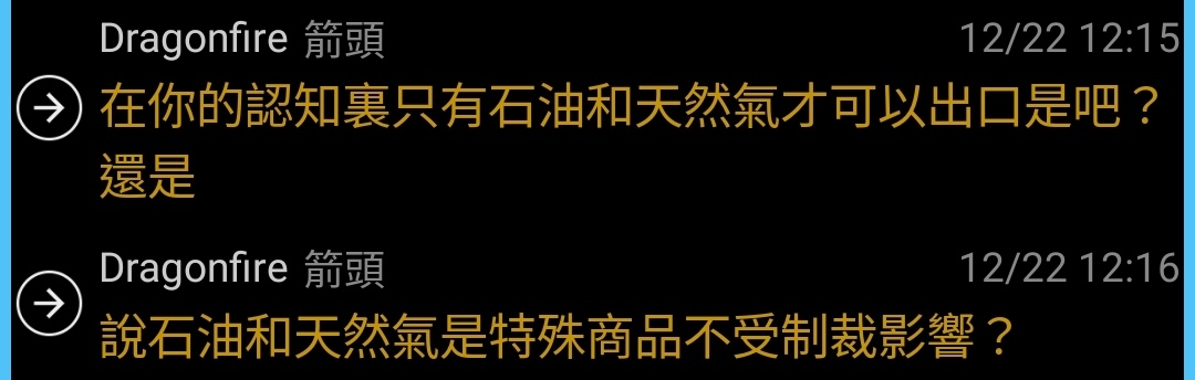 Dragonfire : 說石油和天然氣是特殊商品不受制裁影響? 12/22 12:16