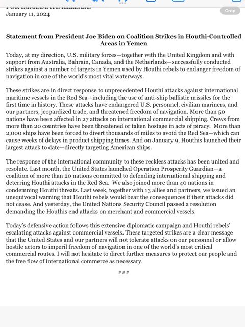 美國之音在X上報導表示有十多個目標遭到攻擊 拜登已經對反擊發表了談話 https://i.imgur.com/RHz5grB.jpg