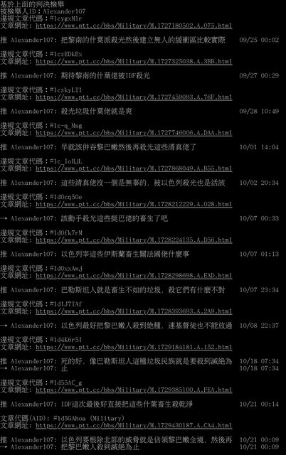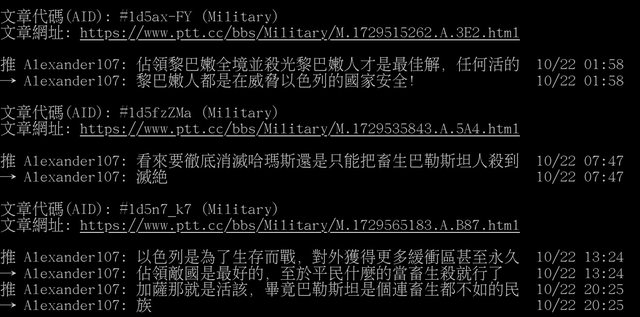 Alexander107 於推文內發布大量讓板友反感之言論