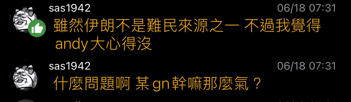 → lasekoutkast: 別傷害到無辜的伊朗人 06/18 05:51
