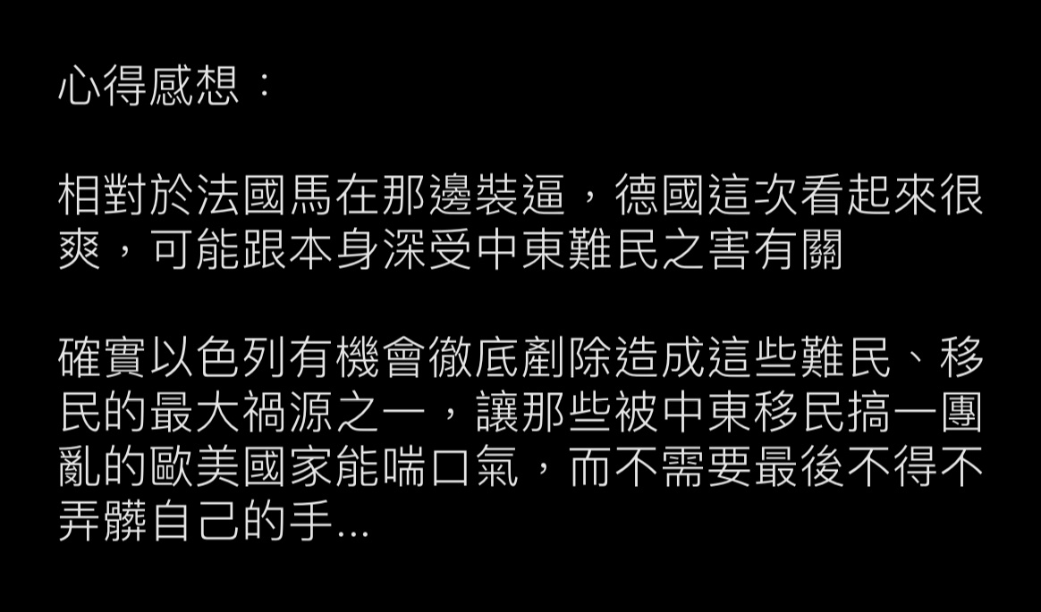 推 CGT : 以色列做了很多髒活沒錯,但就我來看歐美這些見風 06/18 01:43