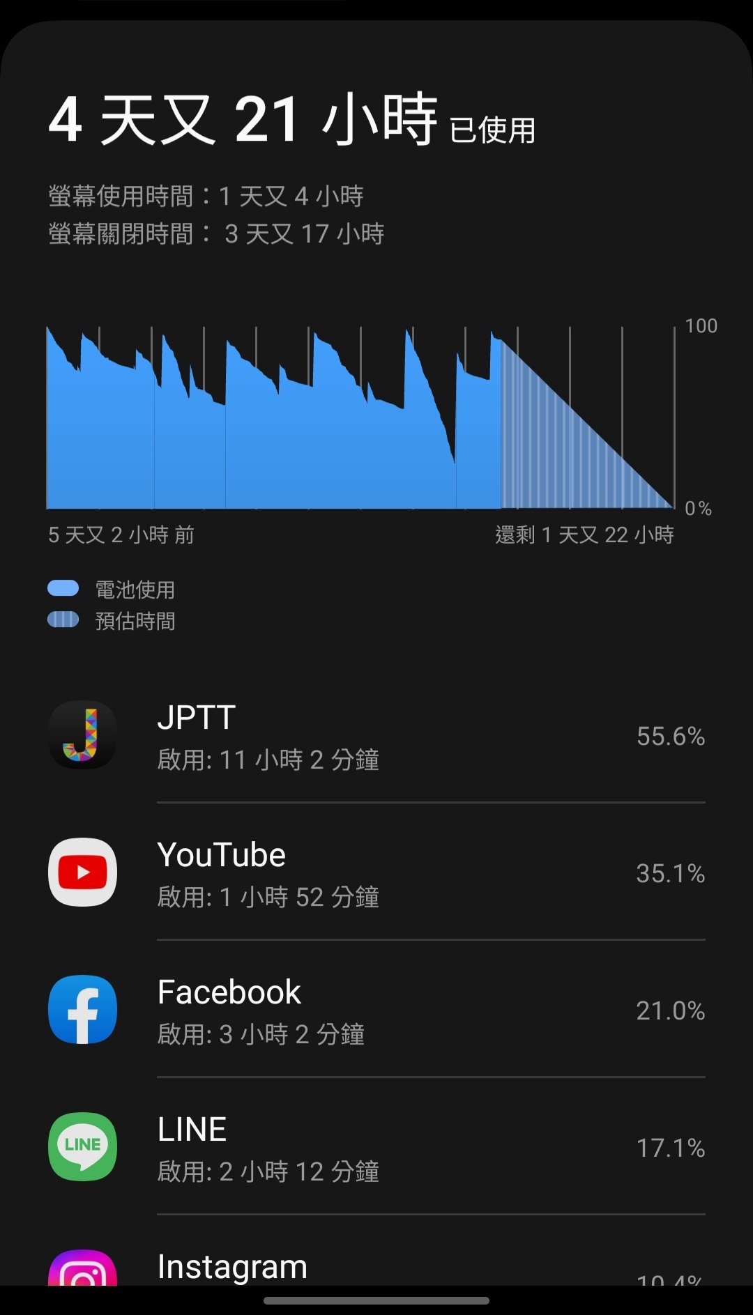 → aspeter : 我猜是wifi/app沒關多少有影響不然不會掉那麼多 06/22 16:18