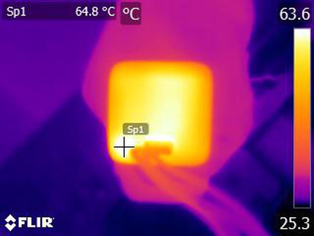 ▼輸出30W連續一小時後連接埠處的紅外線熱影像圖