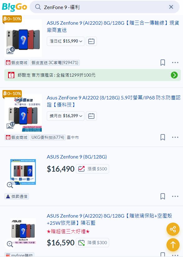 → swordrainbow: 目前就看到蝦皮賣zenfone9最便宜,所以可以試看看 07/17 14:07