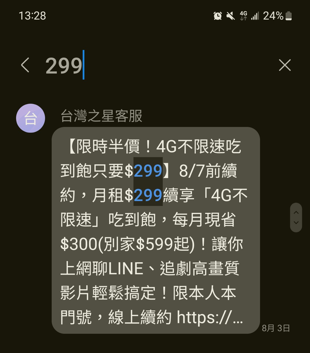 推 motherlay : 遠傳有399 找電銷問 08/11 13:15