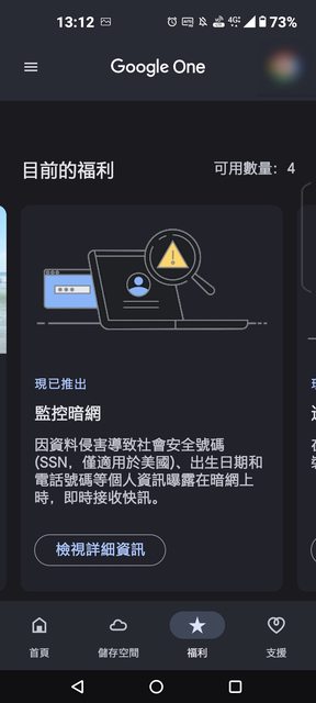 → revon : google one這個服務是只有買網路硬碟空間的才有…… 08/20 13:30