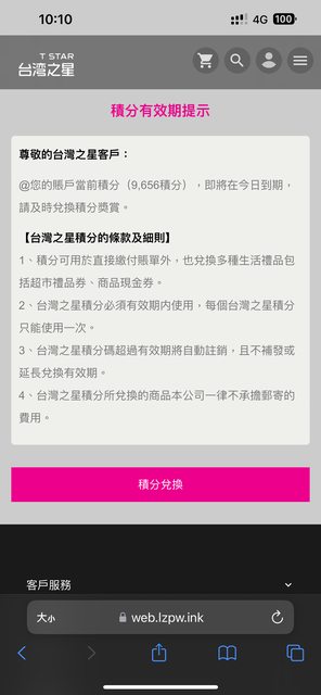 噓 Feishawn : 台灣之星只會寄簡訊叫你續約哪會跟你說什麼點數 08/27 18:12