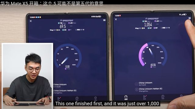 華為又無預警的發表兩款新手機 Mate X5 跟 Mate 60 pro+ 看了一下鐘文澤開箱 用Mate X5跑Speedtest測出1,054Mbps 這應該突破4G理論速度了吧 https://i.imgur.com/15TJZ6B.png