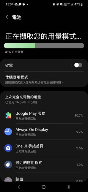 最近入手了watch 6 classic 但昨天晚上沖到90%後 到今天下午三點已經剩不到40% 有開AOD跟每10分鐘偵測心跳 但感覺耗電速度有點快 打開電量使用狀況發現google play服務耗了30% https://i.imgur.com/bOJ7RvW.jpg