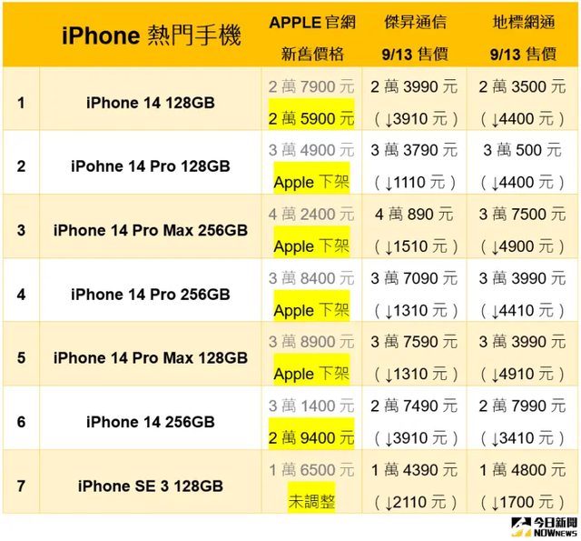 Apple官網今(13)日調降舊機售價,通路大多也連動降價,《NOWnews》整理傑昇通信、