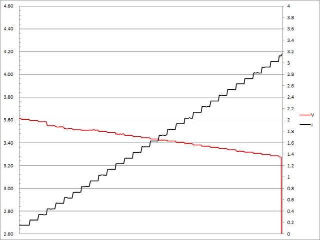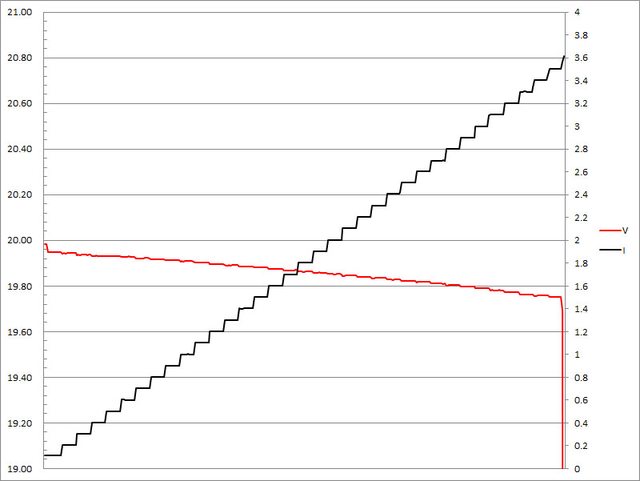 ,輸出電壓下降,輸出電流超過3.2A截止