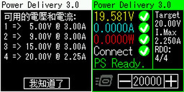 ▼搭配5A線材下標準PD快充協議的固定檔提供5V/3A、9V/3A、15V/3A、20V/3.25A