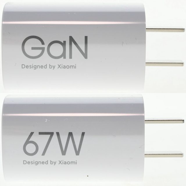 ▼本體白色外殼的其中2個側面有GaN、67W、Designed by Xiaomi字樣