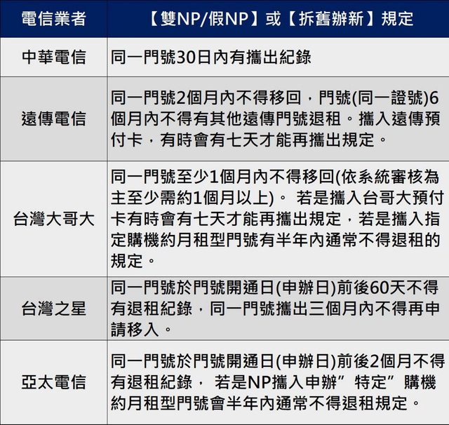 y800122155 : 他自己查系統你30天內曾經是舊客戶NP出去,不給你NP 10/25 20:56