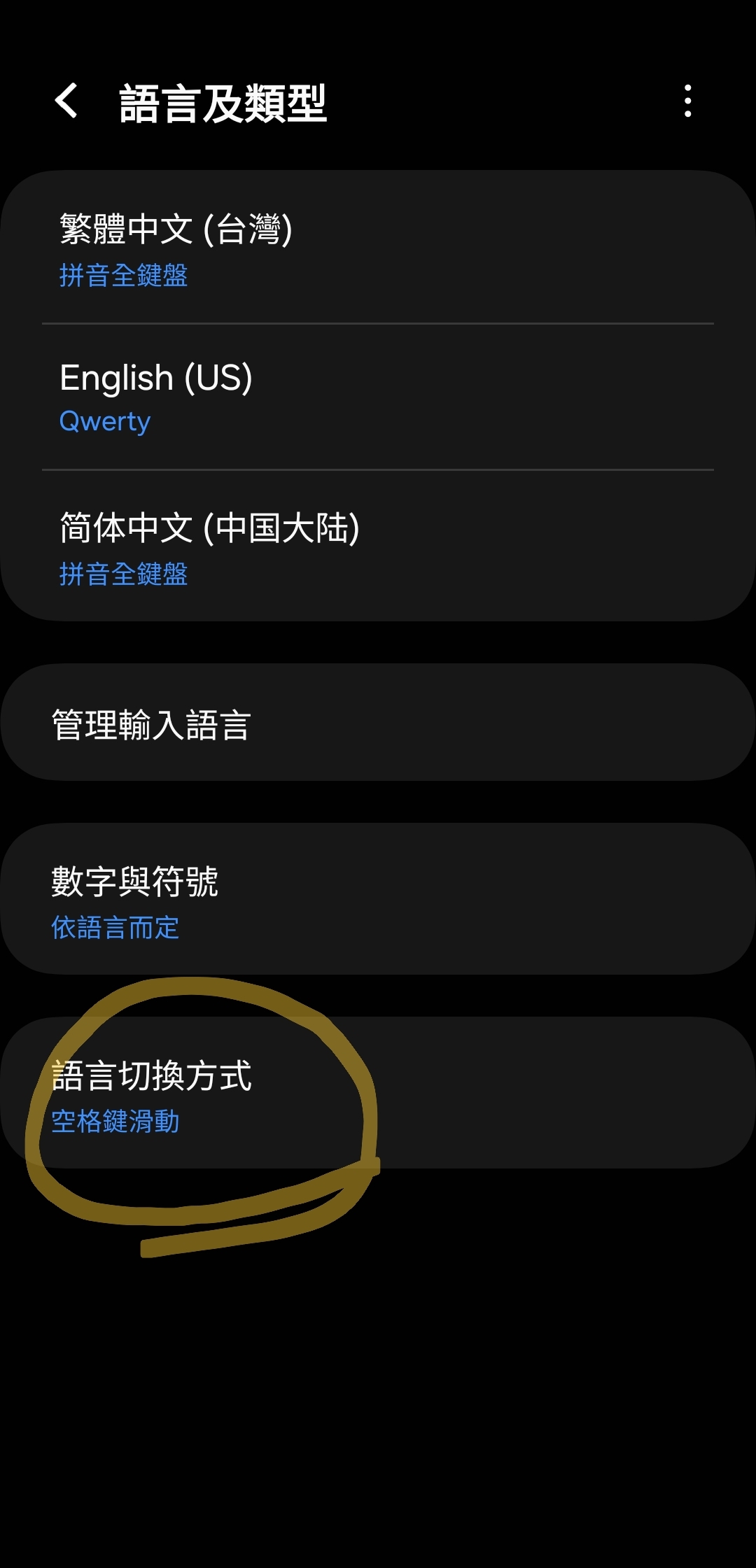 按切換語言鍵後變成上一個輸入過的語言嗎?