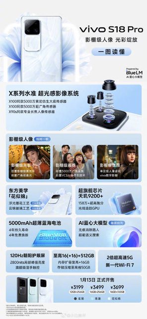 這代主打影棚級人像拍攝 補光燈更強 然後都有藍心小V AI大模型 Vivo S18 Pro 主攝是X100同款IMX920 +超廣JN1+2倍人像 和算法都給上去 SOC 天璣9200+ https://i.imgur.com/xDhLk1O.jpg