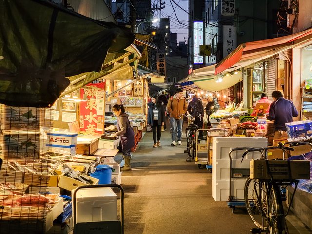 抵達築地,天才剛亮(約莫6點),使用夜景模式