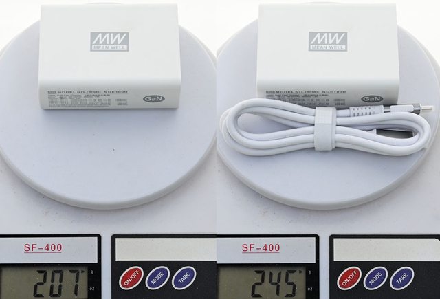 ▼充電器重量207克,充電器加上USB-C to USB-C高速資料傳輸充電線重量245克