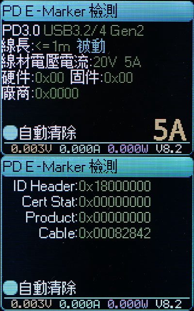 ▼E-Marker資訊,電力傳輸支援20V/5A 100W,資料傳輸支援USB3.2(10Gbps)/USB4