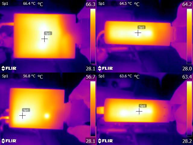 ▼C1輸出100W一小時後充電器本體的紅外線熱影像圖