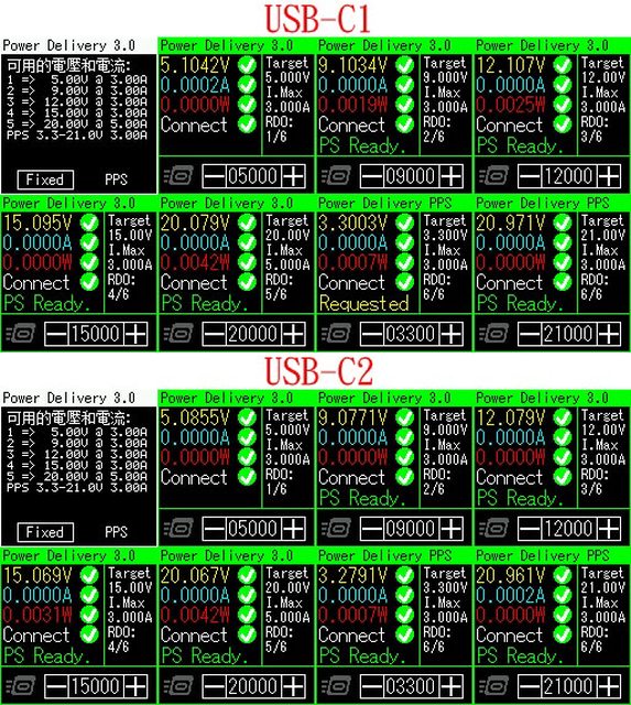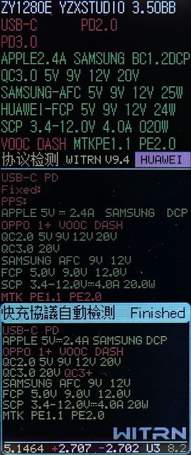 ▼C1+C2+A1+A2輸出下,分配到45W輸出的C1埠,固定檔提供5V/3A、9V/3A、12V/3A、
