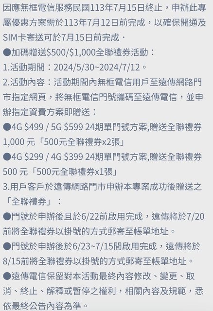 PTengineer : 有送遠傳幣跟禮券 可以辦吧 遠傳499的 05/31 13:58