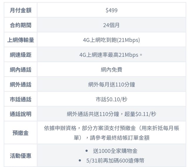 k518339 : 裡面的方案其實還有月付199 6.2G的方案 05/30 12:05
