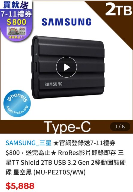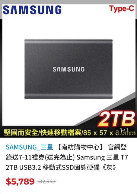 LegendaryOli: 我買T7 shield 之前搭活動跟星讚禮才買兩三千 現在 05/31 20:44