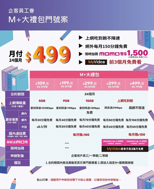 我看M01那邊有人去直營門市輝也有輝到399不限速吃到飽的方案(499-100)