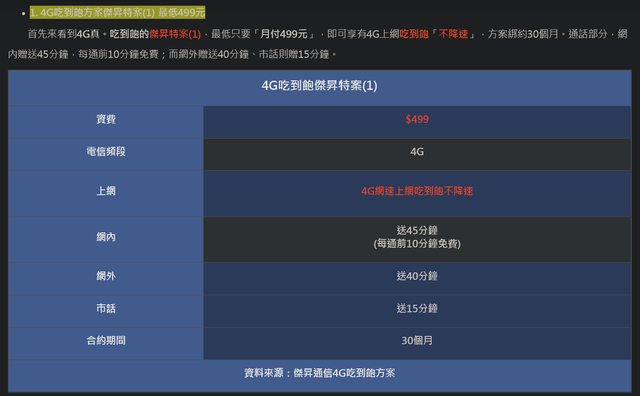 小魯我主要是在各價位找合約內容(主要是行動數據方面)相對優秀的方案