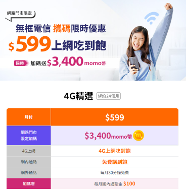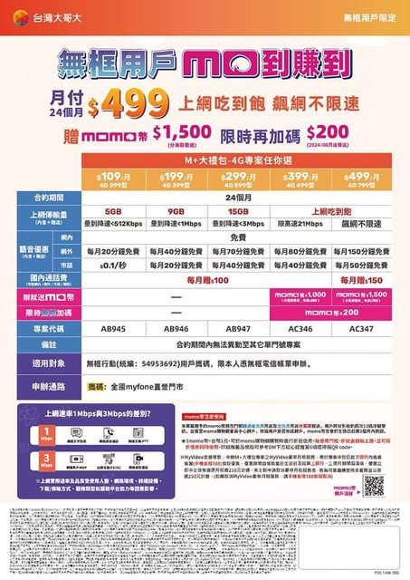 elise234 : 台哥網路門市這599吃到飽不降速送mo幣,也很優 06/07 18:09